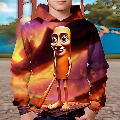 Chico 3D Graphic Caricatura Sudadera Pullover Manga Larga Impresión 3D Primavera Otoño Deportes Moda Ropa de calle Niños 4-12 años Con Capucha Exterior Casual Diario Ajuste regular