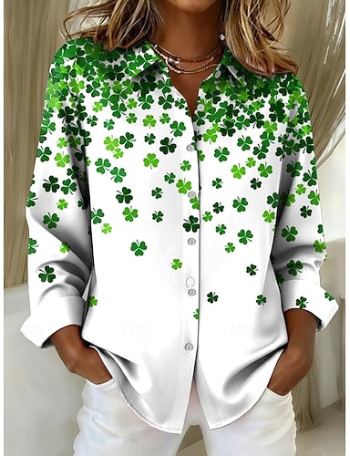 Día de San Patricio Mujer Blusa Botones Estampado Graphic Trébol Vintage Elegante Casual Manga Larga Cuello Camisero Tops regulares Diario Trabajo Negro Blanco Verde Claro Verde Trébol Verano