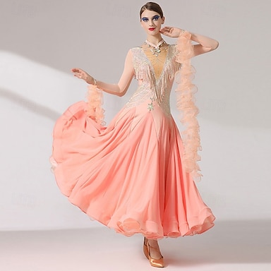 vestido de baile latino borla con flecos mujer entrenamiento rendimiento manga larga malla chinlon