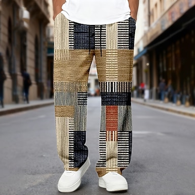 Hombre Plaid Retazos Rehacer Pantalones Pantalones casuales Cintura elástica con cordón. Hawaiano Étnico Casual Exterior Vacaciones Festivos Bolsillos laterales Pantalones rectos Verano Primavera
