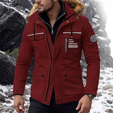 Hombre Chaqueta de Invierno Chaqueta de lana Chaqueta con capucha Chaqueta para senderismo Deporte Acampada y Senderismo Impermeable Cortavientos Detalles en Piel Capucha desmontable Otoño Invierno