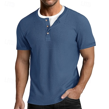 Hombre Camisa henley gofrada Tee Camiseta de mezcla de algodón Manga Corta Bloque de color Plano Moda Design Casual Bloque de Color Botones falso de dos piezas Cuello Barco Henley Casual Diario