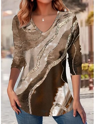 Año Nuevo Mujer Camiseta Estampado Ombre Graphic Vintage Moda Elegante Manga Larga Escote en Pico Tops regulares Diario Amarillo Rosa Rojo Naranja Dorado Verano Primavera Otoño