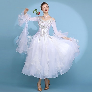 Vestidos de baile de salón para mujer, competición, manga larga, moderno, tango, vals, trajes estándar