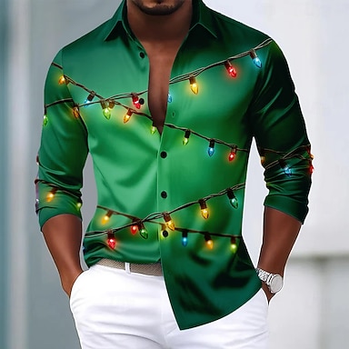 Navidad Hombre Degradado de color Luz de Navidad Camisa Camisa de raso Camisa para Vestido Manga Larga Moda informal Fiesta Festivos Verano Primavera Otoño Cuello Vuelto Impresión 3D Camisas con
