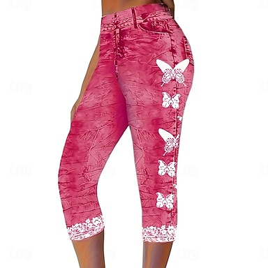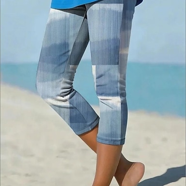 Mujer Polainas Vacaciones Moda Hawaiano Capris Media cintura Floral Graphic Estampado Comodidad Suave Transpirable Alta elasticidad Casual Diario Vacaciones Azul Piscina Color Ceniza Verano Primavera