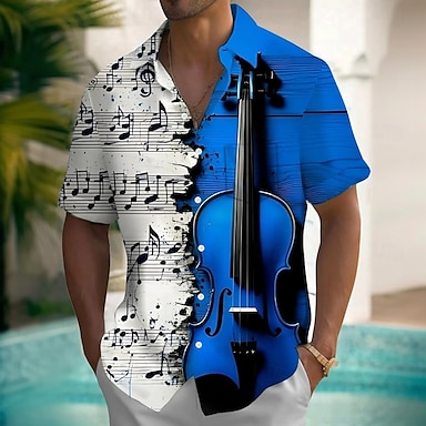 Hombre Directores de la junta Guitarra Notas musicales Camisa Camisa de verano Abotonar la camisa Manga Corta Moda informal Exterior Vacaciones Uso Diario Verano Primavera Cuello Vuelto Impresión 3D