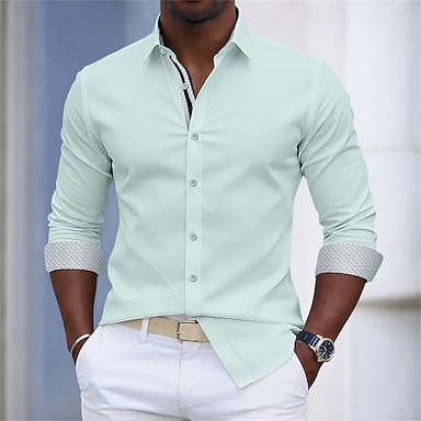 Hombre Camisa Camisa para Vestido Abotonar la camisa Color sólido Diario Negocio Bleu Ciel Negro Blanco Verde Claro Manga Larga Cuello Vuelto Todas las Temporadas Ropa Retazos