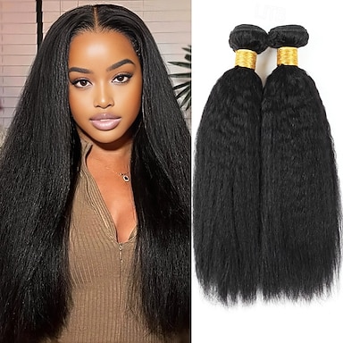 Cabello humano brasileño 1b #, cabello humano liso yaki negro natural, 2 paquetes de 200 g, 10-28 pulgadas