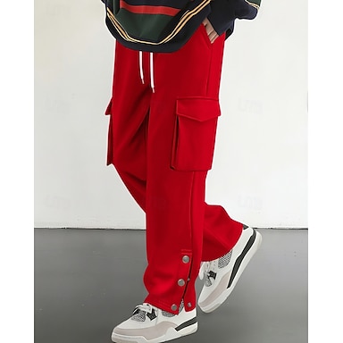 Hombre Pantalones deportivos tipo cargo Pantalones de Deporte Pantalones Correa Bolsillo Cintura elástica Plano Comodidad Deporte Diario Moda Casual Negro Rojo Microelástico