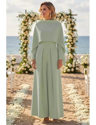 Conjunto de pantalón vestido largo madre de la novia Manga larga Escote joya Elegante Simple invitada de boda con color sólido