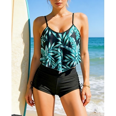 Mujer Traje de baño Tankini 2 Piezas Tropical Utra ligero (UL) Elástico Sin Mangas Bañadores Surf Submarinismo Verano