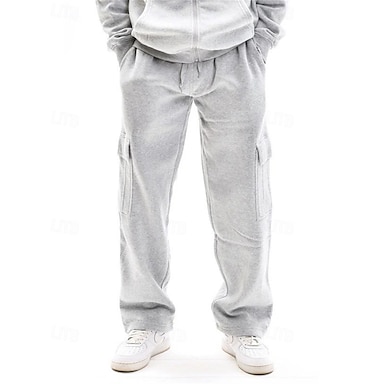 Hombre Pantalones Pantalones deportivos tipo cargo Pantalones deportivos de pierna recta Bolsillo Cintura elástica Correa Plano Comodidad Deporte Diario Moda Casual Negro Blanco Microelástico