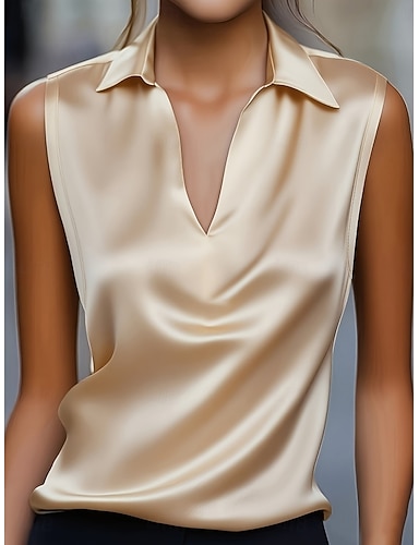 Mujer Camisa Blusa Camisa sin mangas Plano Elegante Clásico Moderno Sin Mangas Cuello Camisero Tops regulares Diario Festivos Noche Plata Negro Blanco Champaña Vino Verano Primavera