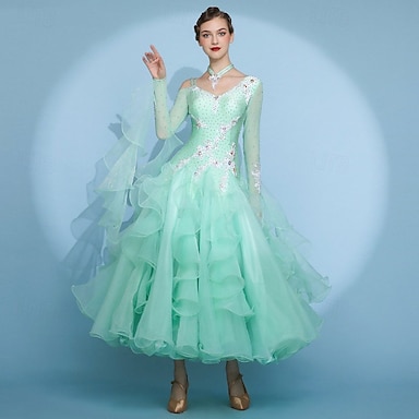 Baile de Salón Vestido Plisado Corte Cristales / diamantes de imitación Mujer Rendimiento Entrenamiento Manga Larga Cintura Alta Licra Malla