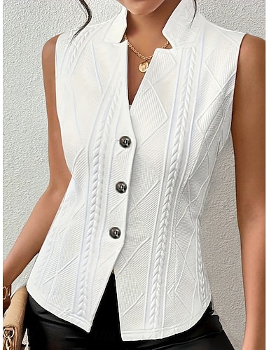 Mujer Chaleco Cómodo Jacquard Botones Moda Casual Color sólido Fiesta Calle Ropa Cotidiana Noche Regular Escote en Pico Delgado Sin Mangas Ropa de calle Rosa Claro Negro Blanco Verano Primavera