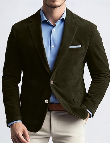 Hombre Chaqueta americana Trabajo Calle Moda Casual Otoño invierno Ante Sintético Plano Bolsillo Botones Cómodo Botonadura Simple Chaqueta de sport Azul Marino Marrón Verde Trébol Color Caquí