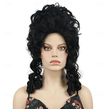 Pelucas negras rizadas para mujer, peluca estilo colmena vintage, disfraz de reina, ideal para Halloween, cosplay y fiestas.