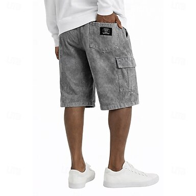 Hombre 100% Algodón Prenda teñida Corto desteñido Pantalones cortos casuales Pantalones cortos con lavado ácido Bolsillo Cintura elástica Un Color Lavado Comodidad Transpirable Longitud de la rodilla