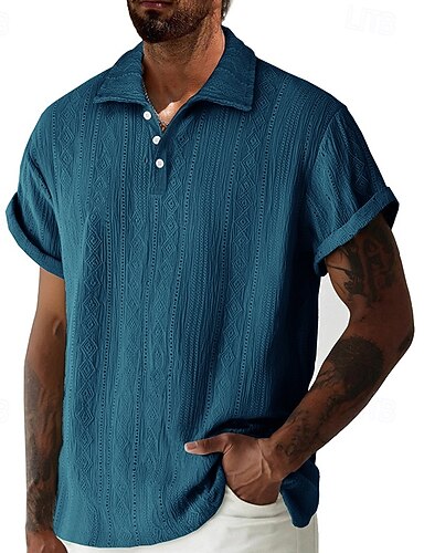 Hombre Camiseta con diseño de gofre Camiseta superior Manga Corta Escote en Pico Frente Abierto Verano Todas las Temporadas Color sólido Con Texturas Moda Design Casual Escote en V Exterior Casual