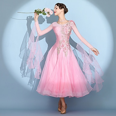 Baile de Salón Vestido Plisado Corte Cristales / diamantes de imitación Mujer Rendimiento Entrenamiento Manga Larga Cintura Alta Licra Malla