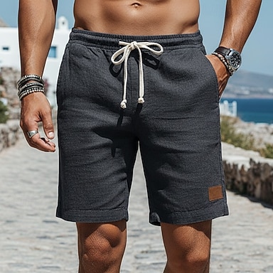Hombre Pantalón corto Pantalones cortos de verano Pantalones cortos de playa Pantalones cortos casuales Correa Cintura elástica Color sólido Con Texturas Comodidad Corto Diario Exterior Ropa de calle