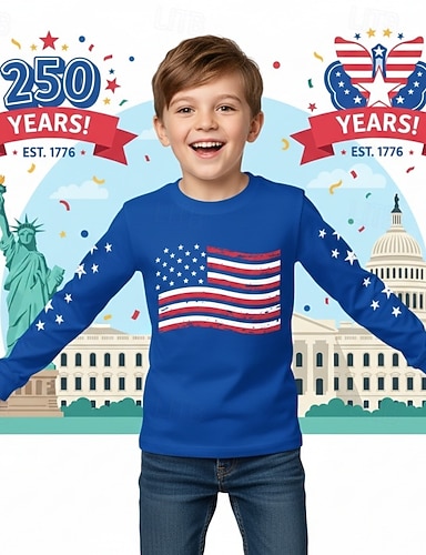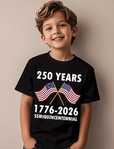100% Algodón Niños Chico Azul Piscina Negro Blanco Graphic 250 aniversario Camiseta Blusa Cuello Barco Manga Corta Exterior Uso Diario Moda Ropa de calle Design Estampado Verano Primavera