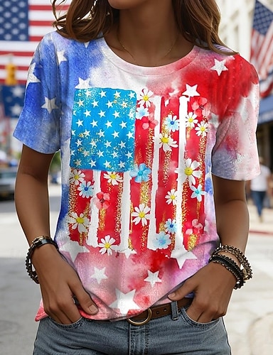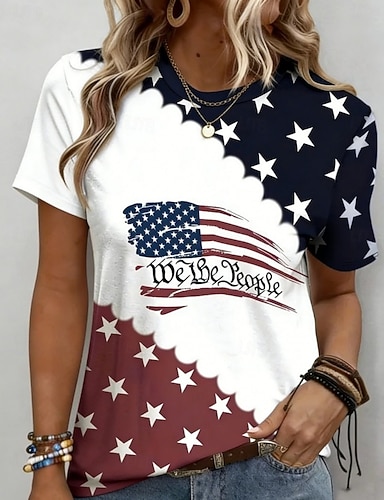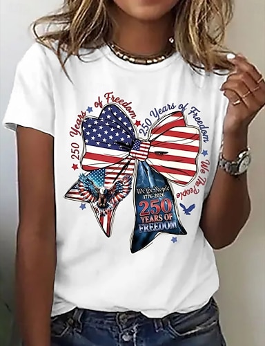 100% Algodón Niños Chico Azul Piscina Negro Blanco Graphic Águila 250 aniversario Camiseta Blusa Cuello Barco Manga Corta Exterior Uso Diario Moda Ropa de calle Design Estampado Verano