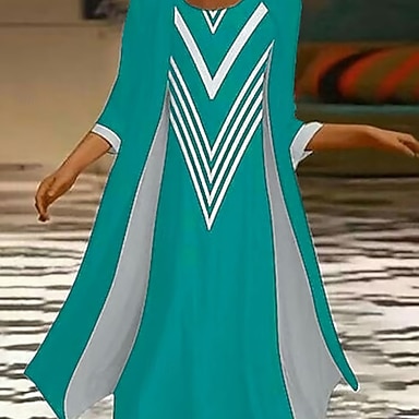 Mujer Conjunto de vestido Vestido de cambio Vestido de verano Casual Ombre Geométrico Multi capa Estampado Vestido Midi Manga 3/4 Cuello Barco Diario Blanco Amarillo Naranja Primavera Otoño Ajuste
