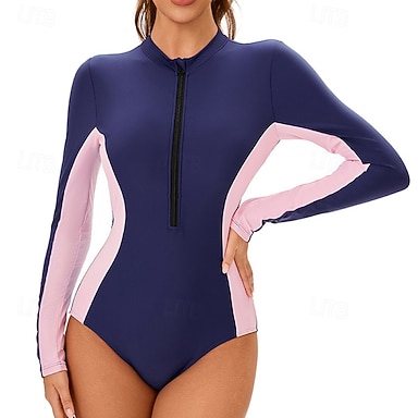 Mujer Camiseta Protección Solar Surf Traje de baño Trajes de baño Bloqueo de color Protección UV Elástico Manga Larga Bañadores Traje de baño Surf Buceo Natación Verano