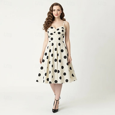Rockabilly Mediodía Un vestido de línea Tirantes Espagueti Lunares Ajustado / Acampanado Disfraz Mujer Carnaval día de San Valentín Casual Reunión de Antiguos Alumnos Fiesta temática retro Adulto