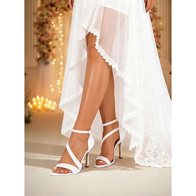 Sandalias de novia elegantes con tiras y tacón de aguja para mujer, con correa en el tobillo, zapatos de boda de punta abierta y tacón alto para novias, tacones de ceremonia blancos minimalistas.