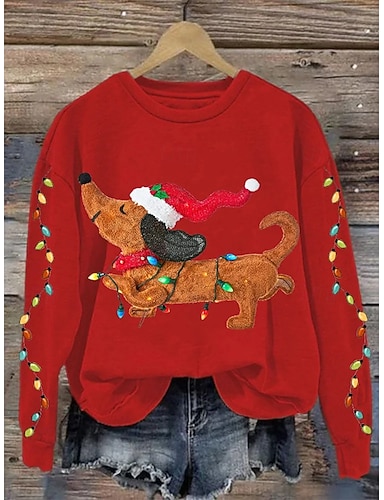 Sudadera gráfica de perro de Navidad para mujer animales casual de manga larga cuello redondo tops regulares en casa trabajo moda callejera negra roja verde primavera invierno