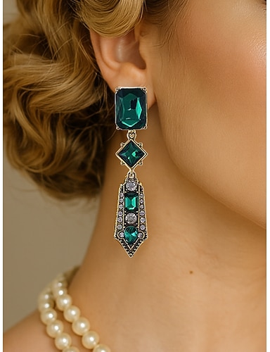Pendientes colgantes de cristal verde Art Déco para mujer: joyas vintage de los años 20 para fiestas Gatsby y eventos nocturnos retro.