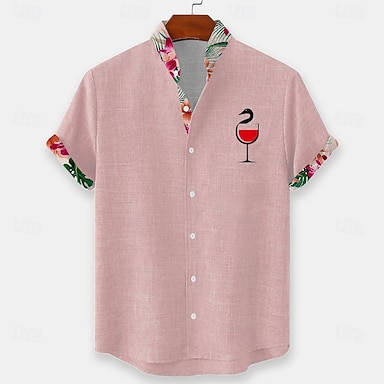 Hombre Camisa Camisa de lino Camisa de verano Camisa de playa camisa hawaiana A Rayas Casual Diario Azul Piscina Rosa Manga Corta Cuello Primavera verano Verano Ropa