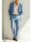 De los hombres Trajes de Lino Casual Boda Rosa Azul cielo Primavera verano Traje Solapa de Pico Moda Casual Color sólido A Medida Juego de 2 piezas Recto 2 botones
