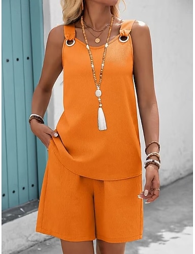 Mujer Conjuntos de pantalones cortos parte superior del bolero Sin Mangas Escote Redondo Plano Moda Ropa de calle Casual Diario Exterior Azul Piscina Negro Rojo Verano Ajuste regular
