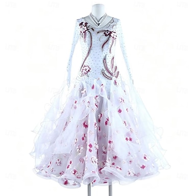 Baile de Salón Vestido Corte Mujer Fiesta Rendimiento Manga Larga Licra Poliéster