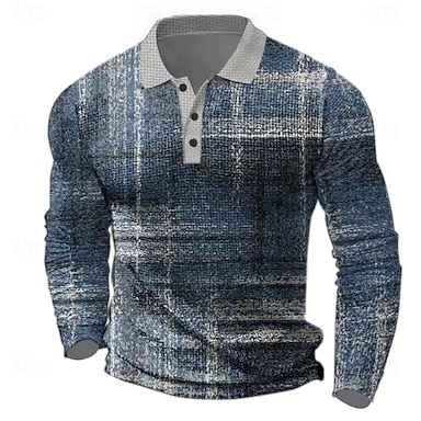 Hombre Plaid Camisetas polo con diseño de gofre Camiseta de golf Manga Larga Camisas de polo Camisas con cuello Vintage Casual Ropa de vacaciones Ropa formal Ropa de festival Botones Impresión 3D