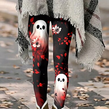 Leggings de mujer vacaciones moda vintage longitud completa cintura alta gráfico impresión calavera suave transpirable alta elasticidad al aire libre calle casual negro primavera otoño invierno