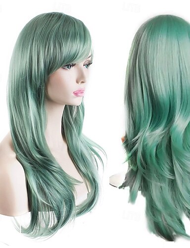 Peluca de carnaval 2026 Rojo Azul Verde Recto Larga Peluca sintética para festival Carnaval Desfile Cabello para disfraz de cosplay para Mujer