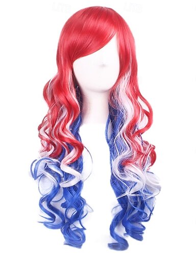 Pelucas largas y onduladas del 4 de julio para mujeres y niñas peluca natural rizada roja blanca y azul pelucas sintéticas resistentes al calor para fiesta de cosplay
