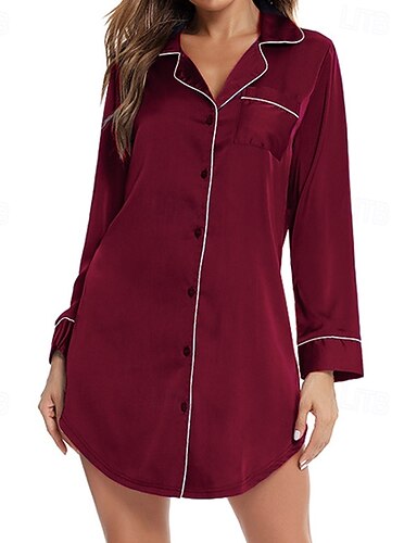 Mujer Ropa de salón Túnica Bata de noche Moda Casual Suave Color puro Retazos Vestidos Hogar Vacaciones Manga Larga Escote en Pico Negro Champaña Rosa Vino Azul Oscuro Verano Primavera Otoño Ajuste