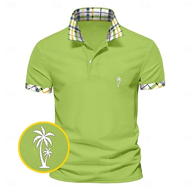 Hombre Camiseta de golf Camisetas polo piqué Negocio Casual Clásico Manga Corta Moda Básico Color sólido Plaid Botones Verano Primavera Primavera & Otoño Ajuste regular Blanco Amarillo Verde Azul