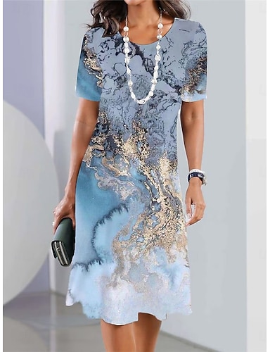 Mujer Vestido hasta la Rodilla Vestido de cambio Vestido informal Elegante Moda Moderno Diario Exterior Vacaciones Ajuste regular Graphic Abstracto Manga Corta Cuello Barco Azul Piscina Rosa Verde