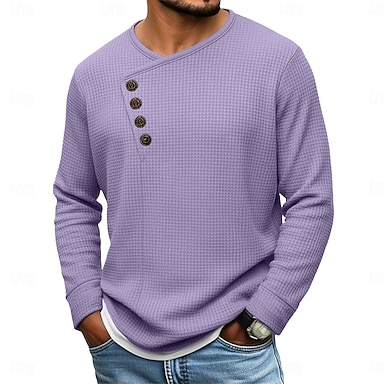 Hombre Camisa Camisa de gofres Camisa de manga corta Camisa para Vestido Camisa casual Negro Blanco Azul Marino Morado Manga Larga Plano Asimétrico Escote en Pico Formal Boda Ropa Elegante Moda