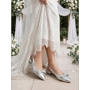 Zapatos de boda planos para mujer con perlas plateadas y lazo: elegantes zapatos planos para bodas en el jardín.