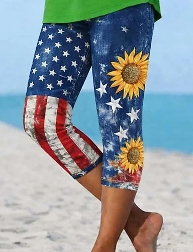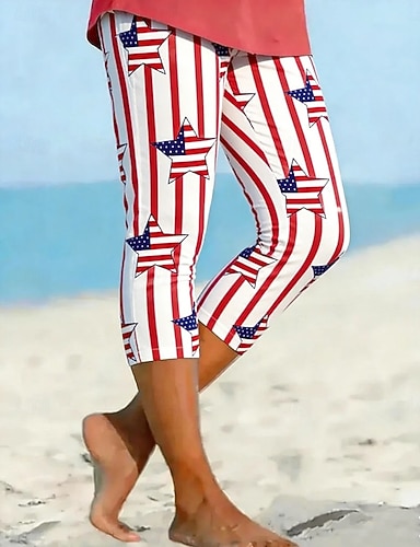 Mujer Chinos Polainas Vacaciones Moda Ropa de calle Capris Alta cinturaPantsDía de la Independencia Americana Hoja Bandera estadounidense Comodidad Suave Cómodo Elástico Diario Exterior Vacaciones