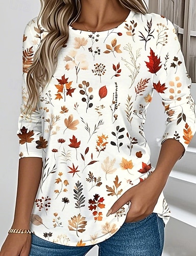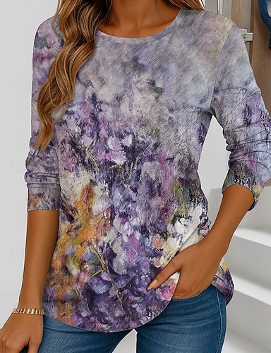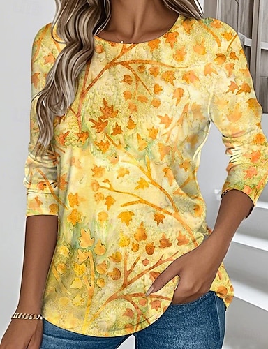 Camiseta de Mujer Manga Larga Cuello Redondo Tunic Gráfico Floral Plantas Vintage Estiloso Clásico Cuello Redondo Tops Regulares Print Diario Amarillo Rojo Azul Púrpura Verde Otoño Preotoño