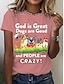 Mujer Camiseta Estampado Graphic Letra Vintage Moda Elegante Manga Corta Cuello Barco Escote Redondo Tops regulares Diario Fin de semana Azul Piscina Negro Blanco Rosa Verde Trébol Verano Primavera